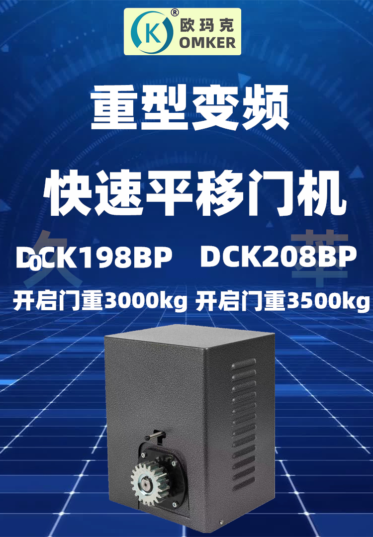 欧玛克(OMKER)重型变频三相220V快速平移门机DCK198BP系列有DCK198BP和DCK208BP及DCK218BP三款型号,分别开启重达3000Kg和3500Kg及5000kg,可以开启超重型的门!