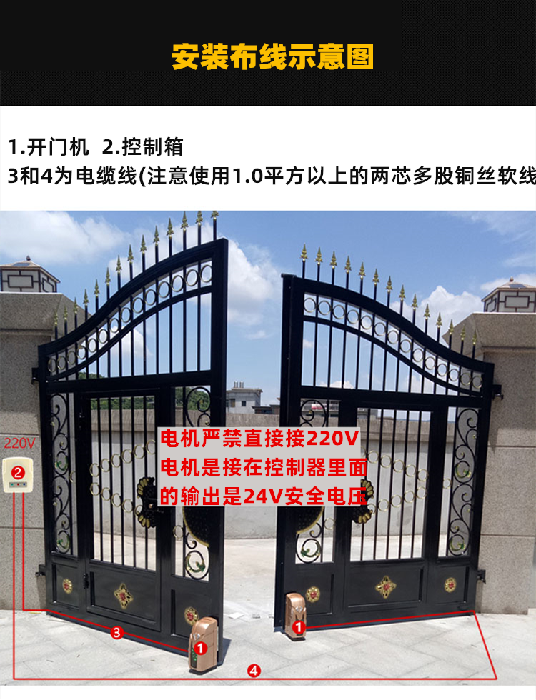 五、诺克(NOCK)滚轮式八字开门机NC520安装布线图: